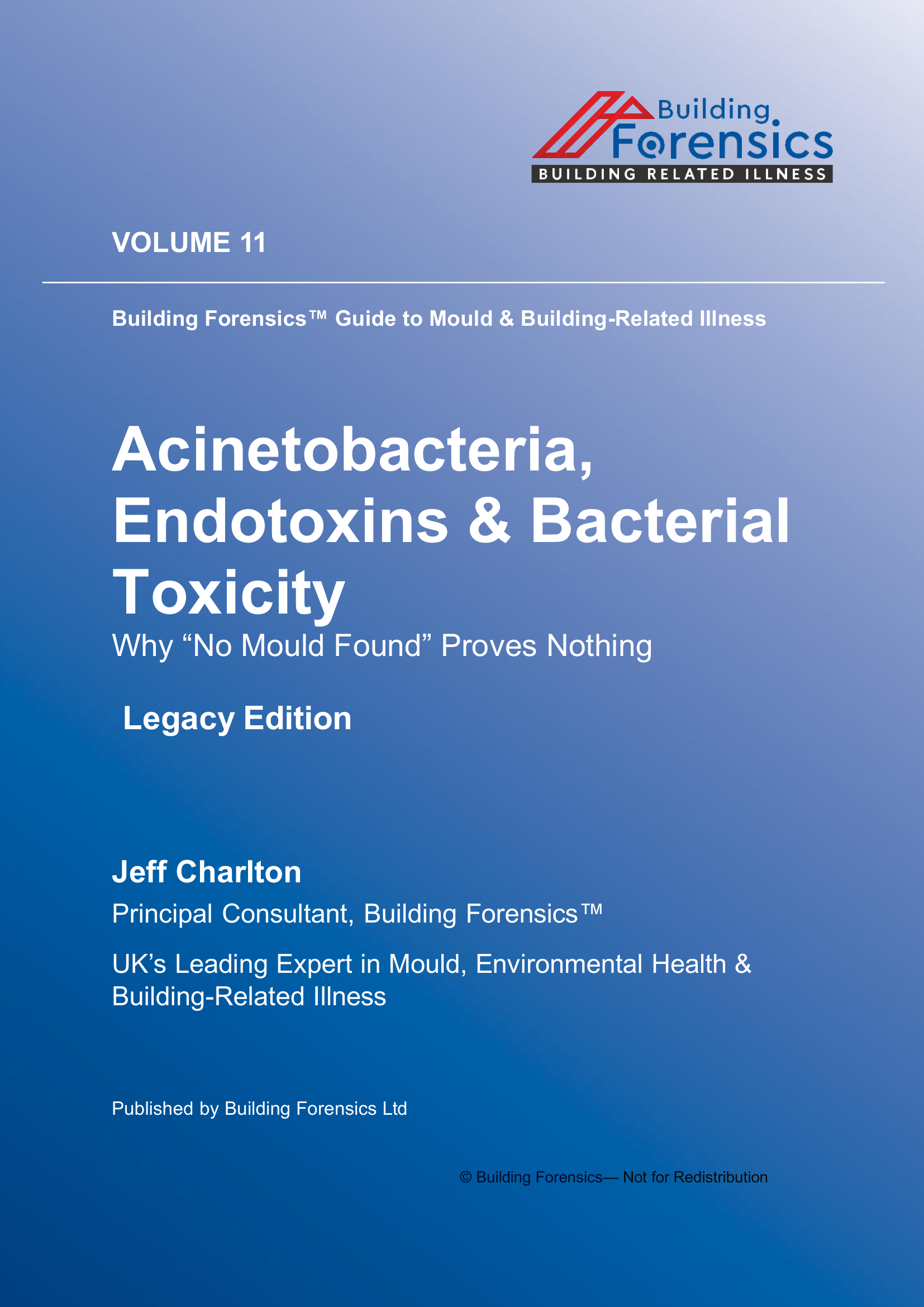 Vol 11 Acinetobacteria, Endotoxins & Bacterial Toxicity examines the environmental and health mechanisms discussed throughout this volume of the Global Microbial Building Related Investigation series. The book analyses contamination pathways, indoor exposure dynamics, and investigative challenges that often lead to misunderstanding or underestimation of mould and microbial hazards in residential and commercial buildings. Drawing on documented environmental cases, building science, and exposure evidence, the volume explores how hidden reservoirs, contaminated dust, ventilation pathways, and microbial by‑products can continue affecting occupants even after remediation attempts appear complete. Particular attention is given to diagnostic misinterpretation, environmental testing limitations, and procedural assumptions that prevent accurate identification of ongoing contamination. The discussion highlights why surface inspection alone rarely reflects the true environmental burden and why incomplete remediation strategies can allow hazards to persist or re‑emerge. Practical investigative principles are outlined for identifying contamination sources, interpreting environmental evidence, and understanding the broader health implications of building‑related exposure.