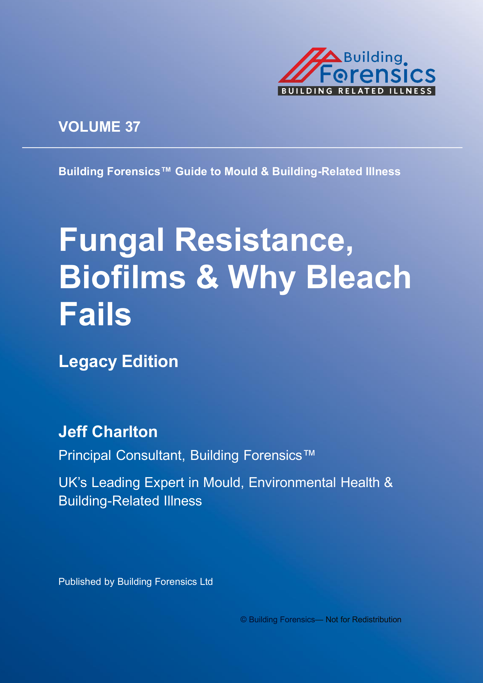Vol 37 Fungal Resistance, Biofilms & Why Bleach Fails examines the environmental and health mechanisms discussed throughout this volume of the Global Microbial Building Related Investigation series. The book analyses contamination pathways, indoor exposure dynamics, and investigative challenges that often lead to misunderstanding or underestimation of mould and microbial hazards in residential and commercial buildings. Drawing on documented environmental cases, building science, and exposure evidence, the volume explores how hidden reservoirs, contaminated dust, ventilation pathways, and microbial by‑products can continue affecting occupants even after remediation attempts appear complete. Particular attention is given to diagnostic misinterpretation, environmental testing limitations, and procedural assumptions that prevent accurate identification of ongoing contamination. The discussion highlights why surface inspection alone rarely reflects the true environmental burden and why incomplete remediation strategies can allow hazards to persist or re‑emerge. Practical investigative principles are outlined for identifying contamination sources, interpreting environmental evidence, and understanding the broader health implications of building‑related exposure.