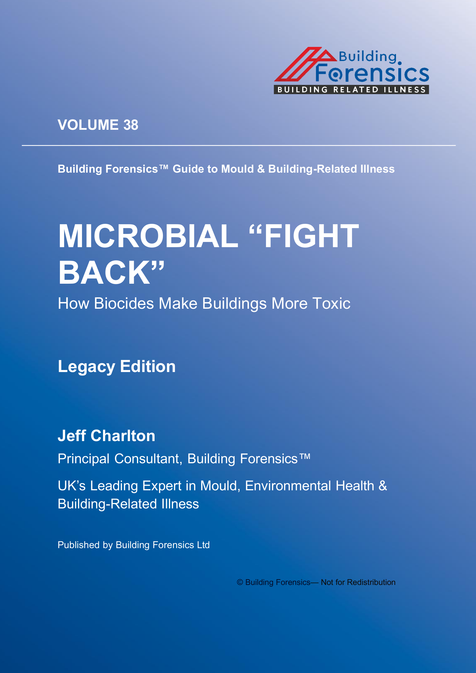 Vol 38 MICROBIAL “FIGHT BACK” examines the environmental and health mechanisms discussed throughout this volume of the Global Microbial Building Related Investigation series. The book analyses contamination pathways, indoor exposure dynamics, and investigative challenges that often lead to misunderstanding or underestimation of mould and microbial hazards in residential and commercial buildings. Drawing on documented environmental cases, building science, and exposure evidence, the volume explores how hidden reservoirs, contaminated dust, ventilation pathways, and microbial by‑products can continue affecting occupants even after remediation attempts appear complete. Particular attention is given to diagnostic misinterpretation, environmental testing limitations, and procedural assumptions that prevent accurate identification of ongoing contamination. The discussion highlights why surface inspection alone rarely reflects the true environmental burden and why incomplete remediation strategies can allow hazards to persist or re‑emerge. Practical investigative principles are outlined for identifying contamination sources, interpreting environmental evidence, and understanding the broader health implications of building‑related exposure.