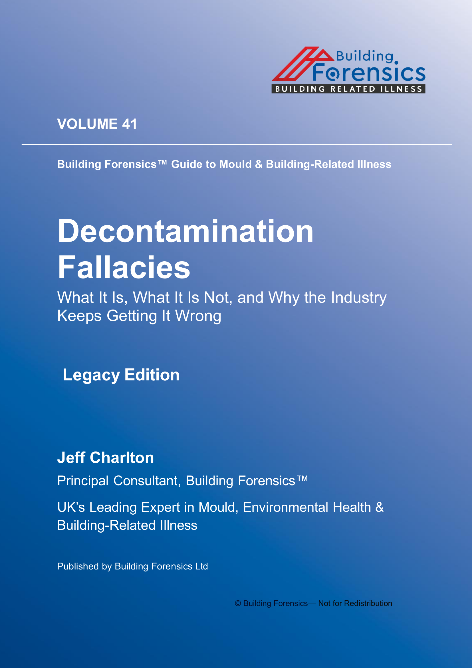 Vol 41 Decontamination Fallacies examines the environmental and health mechanisms discussed throughout this volume of the Global Microbial Building Related Investigation series. The book analyses contamination pathways, indoor exposure dynamics, and investigative challenges that often lead to misunderstanding or underestimation of mould and microbial hazards in residential and commercial buildings. Drawing on documented environmental cases, building science, and exposure evidence, the volume explores how hidden reservoirs, contaminated dust, ventilation pathways, and microbial by‑products can continue affecting occupants even after remediation attempts appear complete. Particular attention is given to diagnostic misinterpretation, environmental testing limitations, and procedural assumptions that prevent accurate identification of ongoing contamination. The discussion highlights why surface inspection alone rarely reflects the true environmental burden and why incomplete remediation strategies can allow hazards to persist or re‑emerge. Practical investigative principles are outlined for identifying contamination sources, interpreting environmental evidence, and understanding the broader health implications of building‑related exposure.